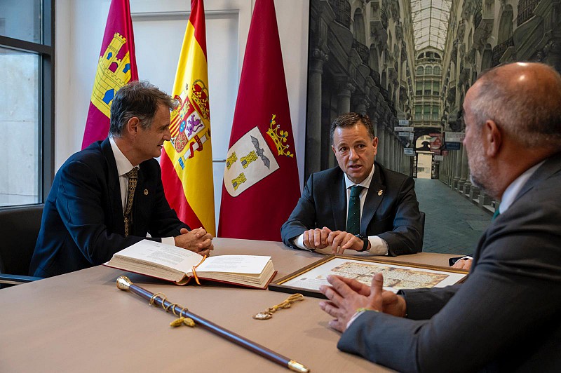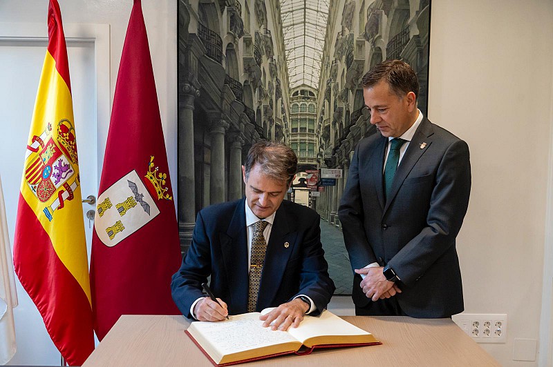 ?? Previamente, el máximo representante del órgano colegial fue recibido por el primer edil de la ciudad, Manuel Serrano, junto con el resto de instituciones reconocidas, FEDA, UCLM, Ejército del Aire, y firmó en el libro de honor del Ayuntamiento manifestando que “el Colegio de médicos ha caminado siempre de la mano de Albacete y ha acompañado a sus vecinos en la salud y en la fragilidad". Con la rúbrica, reafirma el compromiso de la institución que preside "con la ciudad que mira al horizonte con un profundo sentido humano”.